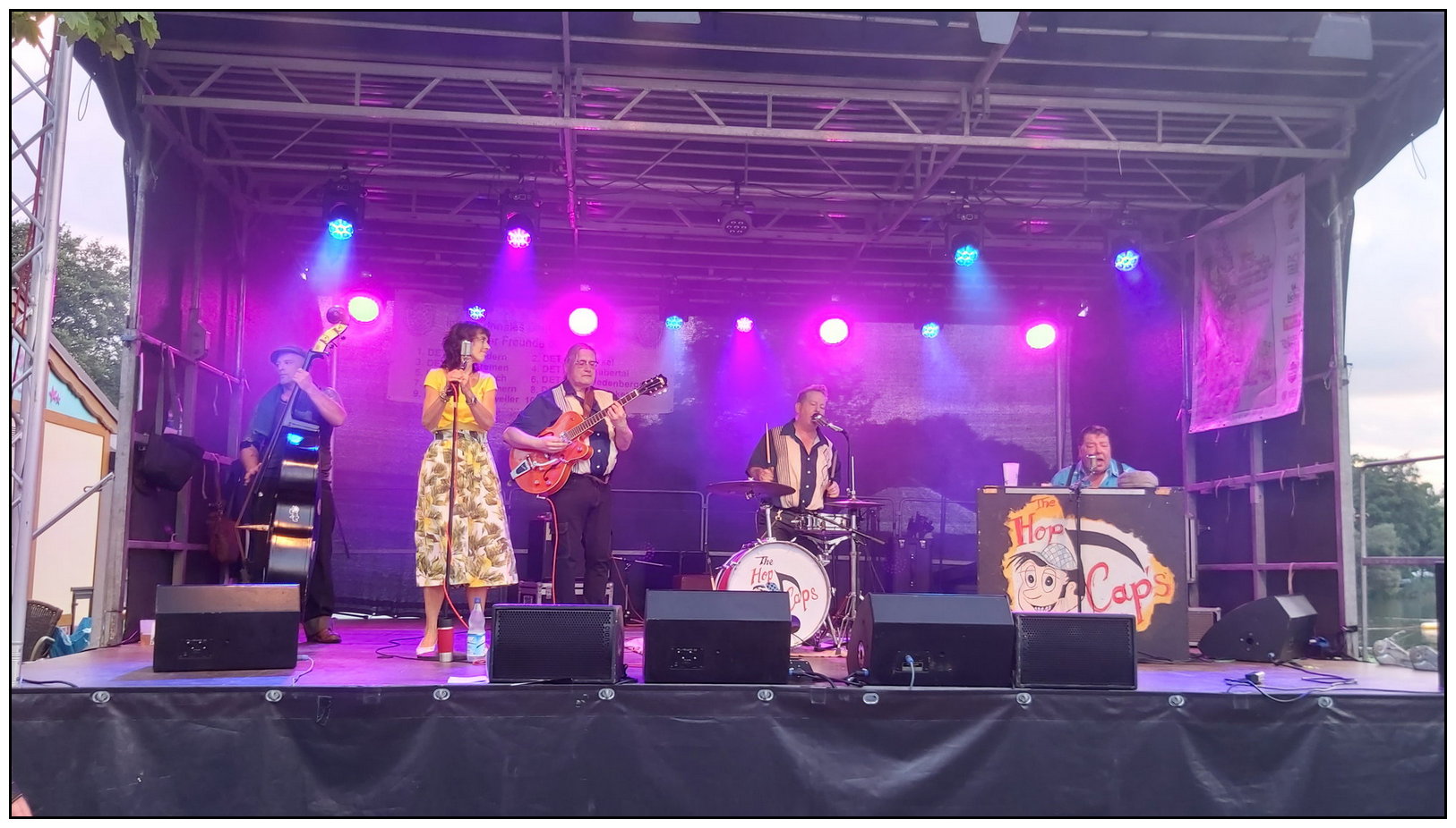 Auf dem Campinggelände gab es ein (indisches) Restaurant, das aber auch Pizza und Salate anbot, außerdem einen Kiosk, wo es Currywurst, Schnitzel und dergleichen gab. Auf der Bühne war jeden Tag Programm, am ersten Abend gab es französische Chansons, dann traten verschiedene Musikgruppen auf. Es waren auch zwei Astronomen vor Ort, die zu mitternächtlicher Stunde einer Gruppe von Interessierten die Sterne erklären wollten, doch leider war der Himmel bewölkt (auch beim zweiten Versuch zwei Tage später), sodass die Sache leider mehr oder weniger ins Wasser fiel. Am Donnerstag wurde die "Schwimmente" zu Wasser gelassen, wo sie bis Samstag auf einem Schwimmkörper mitten im See vor Anker lag - am Samstagabend wurde sie dann für einen guten Zweck versteigert - bei einem Rufpreis von 100 Euro erzielte sie immerhin die stattliche Summe von 2100 Euro. Am Freitag konnte man an einer kleinen Ausfahrt teilnehmen. Auf kleinen Straßen ging es zur Keltenwelt am Glauberg, wo vor 20 Jahren sensationelle Keltenfunde gemacht wurden, die uns in einer sehr interessanten Führung erläutert wurden. Anschließend zur Modellbahnwelt im Bahnhof von Stockheim, wo es eine beachtliche Modelleisenbahnanlage zu bestaunen gab. Dort wurden auch kleine Imbisse, Kaffee und Kuchen angeboten, und man kam wieder mit anderen Entenfahrern ins Gespräch. Nach der Rückkehr von dieser Ausfahrt war mir so heiß, dass ich mich kurz in den See schmiss. Das Wasser war nicht kalt, aber doch erfrischend. Solcherart abgekühlt, machte ich mich auf den Rückweg und entdeckte dabei einen Stand, der - nur an diesem Abend - Räucherforellen anbot. Hannes und unser Nachbar Albi waren schnell überzeugt - und so war das Abendessen gesichert. Danach begaben wir uns zur Bühne, wo es wie jeden Abend Verlautbarungen, Programm-Ankündigungen (wie z.B. die Rätselfrage zum Tag sowie die Auflösung vom Vortag) und natürlich beschwingte Musik gab. Österreichische Freunde gesellten sich zu uns, immer mehr - und irgendwann hatte ich das Gefühl, alle Österreicher, die da waren, waren rund um uns versammelt. Alle waren guter Stimmung, lauschten der Musik oder schwangen das Tanzbein - ein unterhaltsamer Abend! Am Samstagvormittag fuhren wir nach Gedern zum Einkaufen. Man hätte auch zu Fuß gehen können, doch interessanterweise lag zwischen der Stadt Gedern und dem See ein beträchtlicher Hügel. Nach der Rückkehr mischten wir uns wieder ins Geschehen. Das Treffen war deutlich kleiner als ein Welttreffen, sodass man sich viel öfter über den Weg lief und auch mehr Zeit für intensivere Gespräche hatte. Und doch war es so groß, dass immer etwas los war. Es gab eine Ausstellung mit besonders sehenswerten und ausgefallenen Vertretern der Gattung 2CV, und am Nachmittag fuhr die "Dolly-Parade" über den Campingplatz.